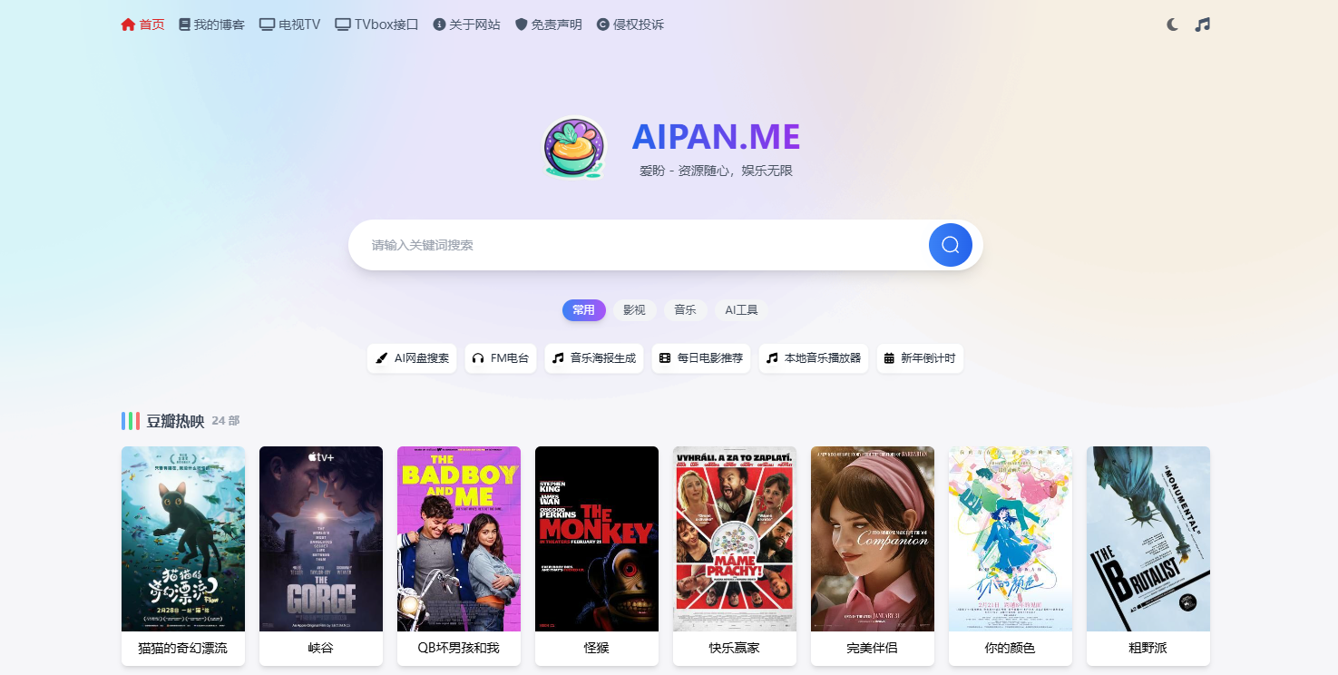 官方网站连接(缺点有广告):AIPAN.ME - 网盘资源搜索引擎